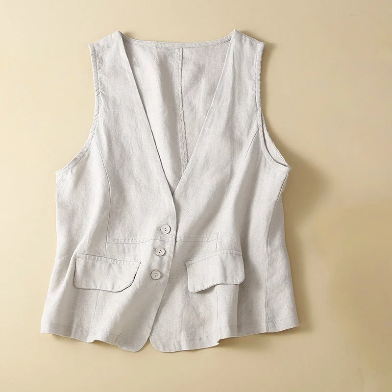 Feel unstoppable in a blouse that fuses sharp, architectural flair with the featherlight touch of pure linen. Designed to keep you cool, confident, and undeniably captivating — anywhere, anytime.