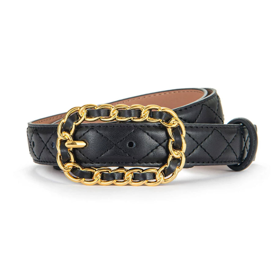 Ardena Quilted Leather Belt with Gold Chain Buckle