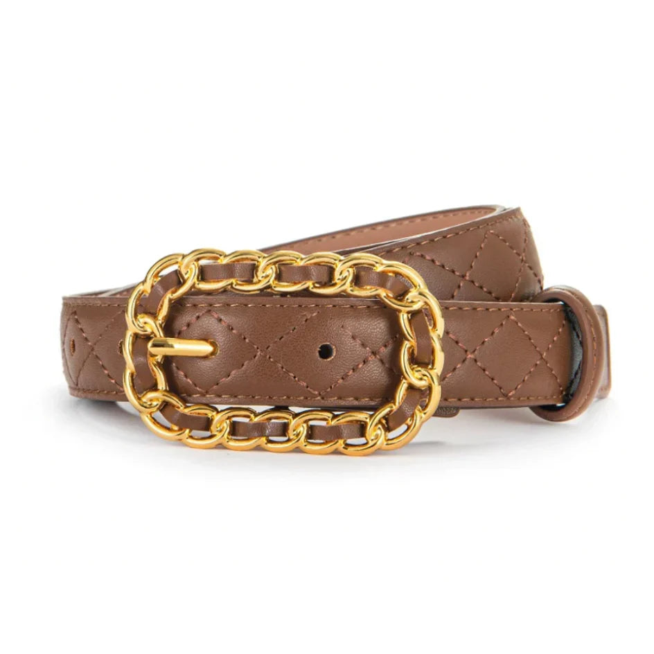 Ardena — Quilted Vegan Leather Belt with Gold Chain Buckle