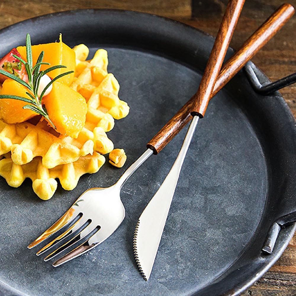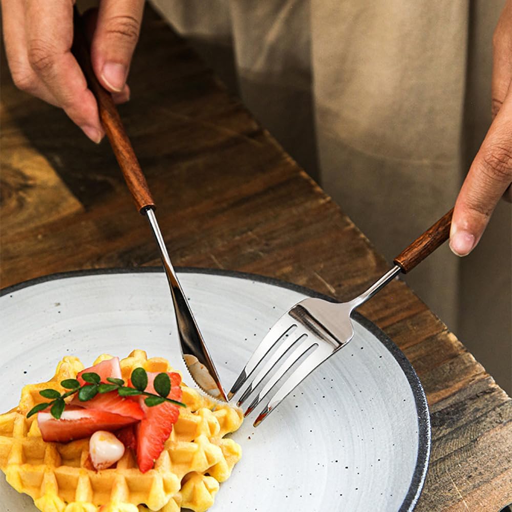 Natural Rosewood Handles: Distinctive rosewood grips bring a touch of elegance and warmth to your table setting.