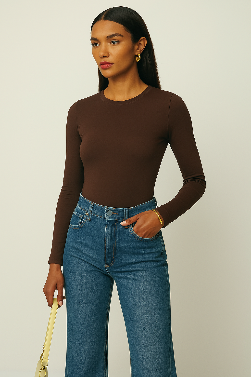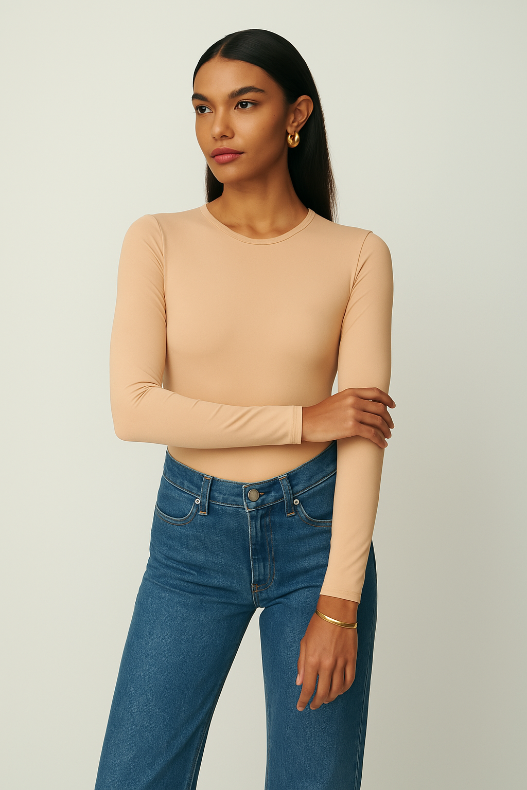 Crew Neck Long-Sleeve Bodysuit - Soft, Second Skin Fit | Nexara