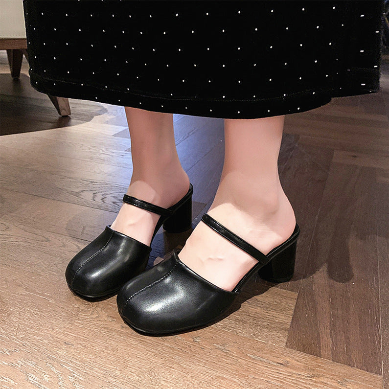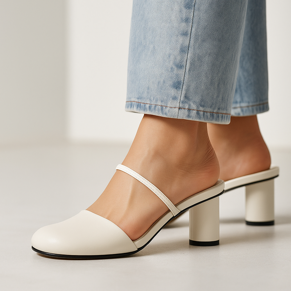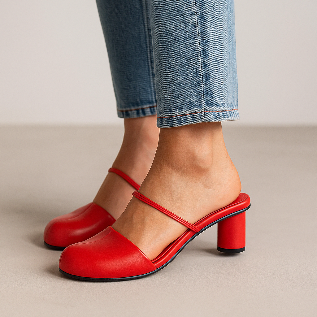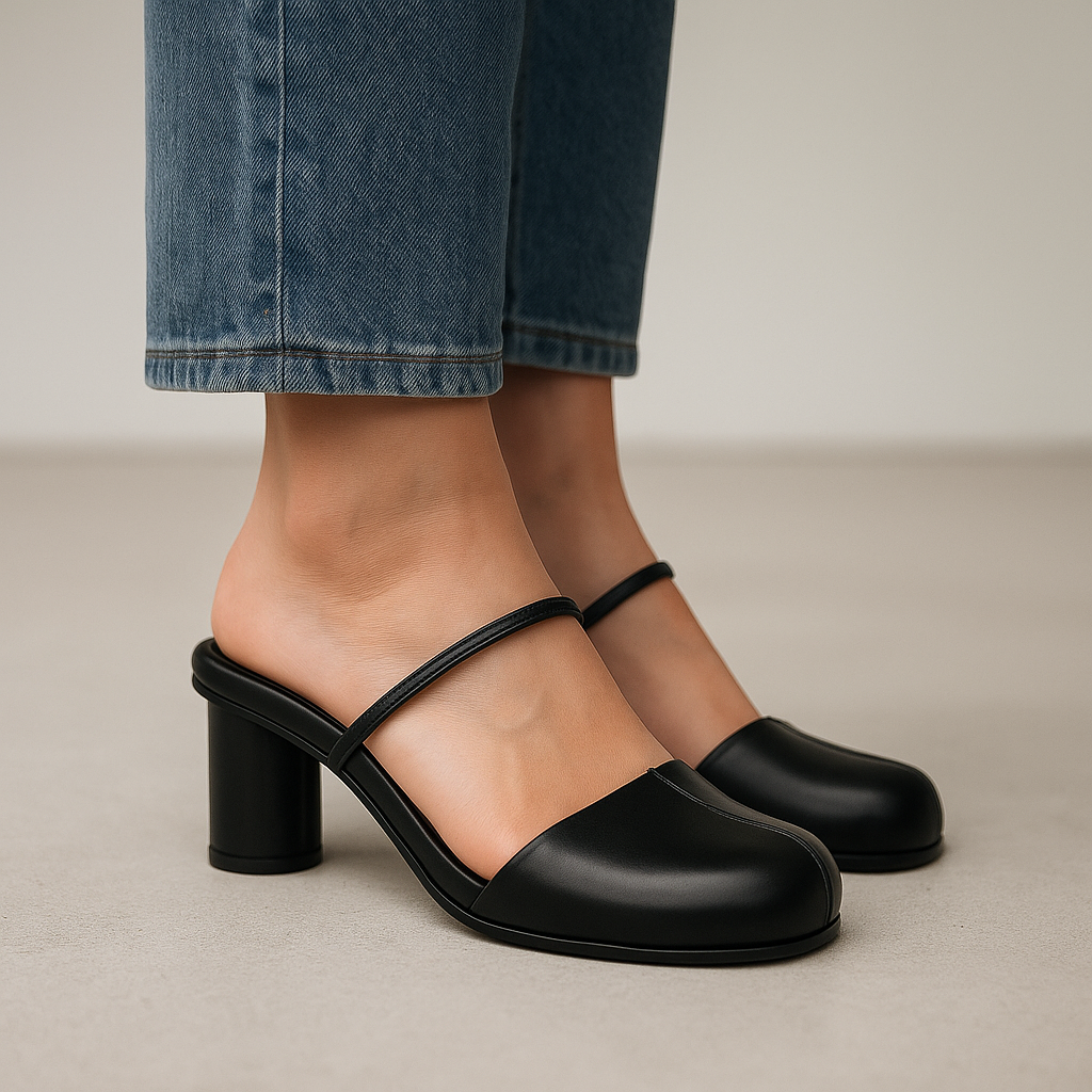 Unlock a sleek, razor-sharp style that holds nothing back. These mules redefine your essentials with a daring rounded front and a heel built for all-day power moves. Elevate your wardrobe—comfort and edge fused like never before.