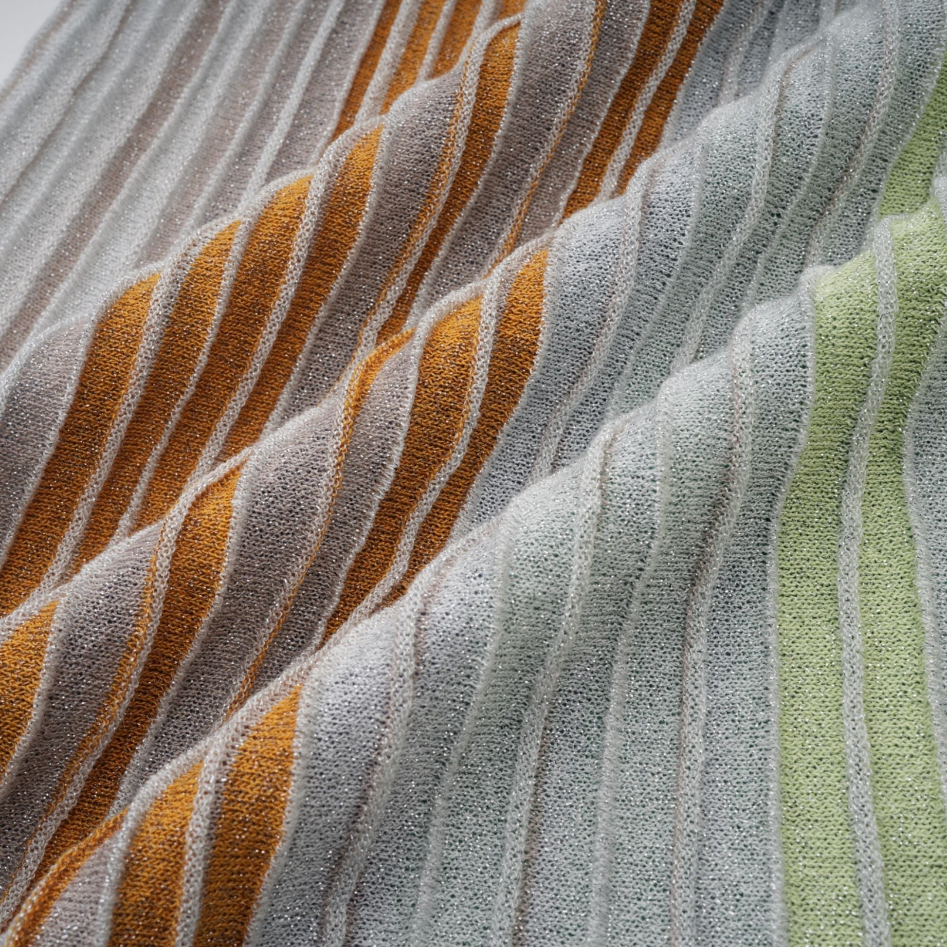 • Luxe Fiber Fusion: This potent blend of viscose, metallic, nylon, and elastane delivers not just beauty, but battle-tested durability and stretch that moves with your life — no compromises.