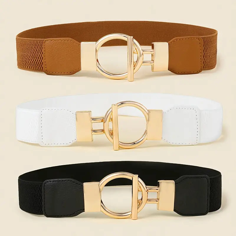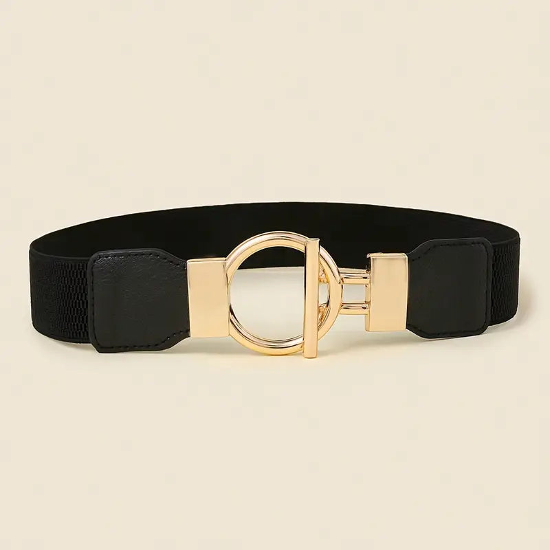 Jarin Belt — Stretch Waist Belt with Gold-Tone Circle Buckle