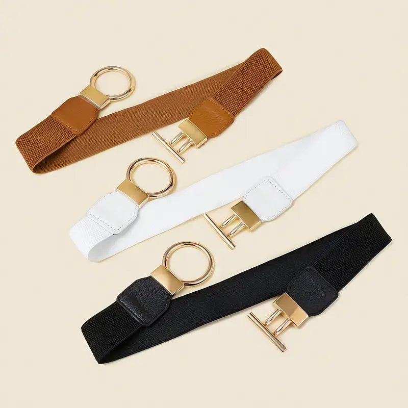 ✅ Gold-Tone Circle Buckle: A stylish metal buckle that brings a refined, modern detail to your outfits.