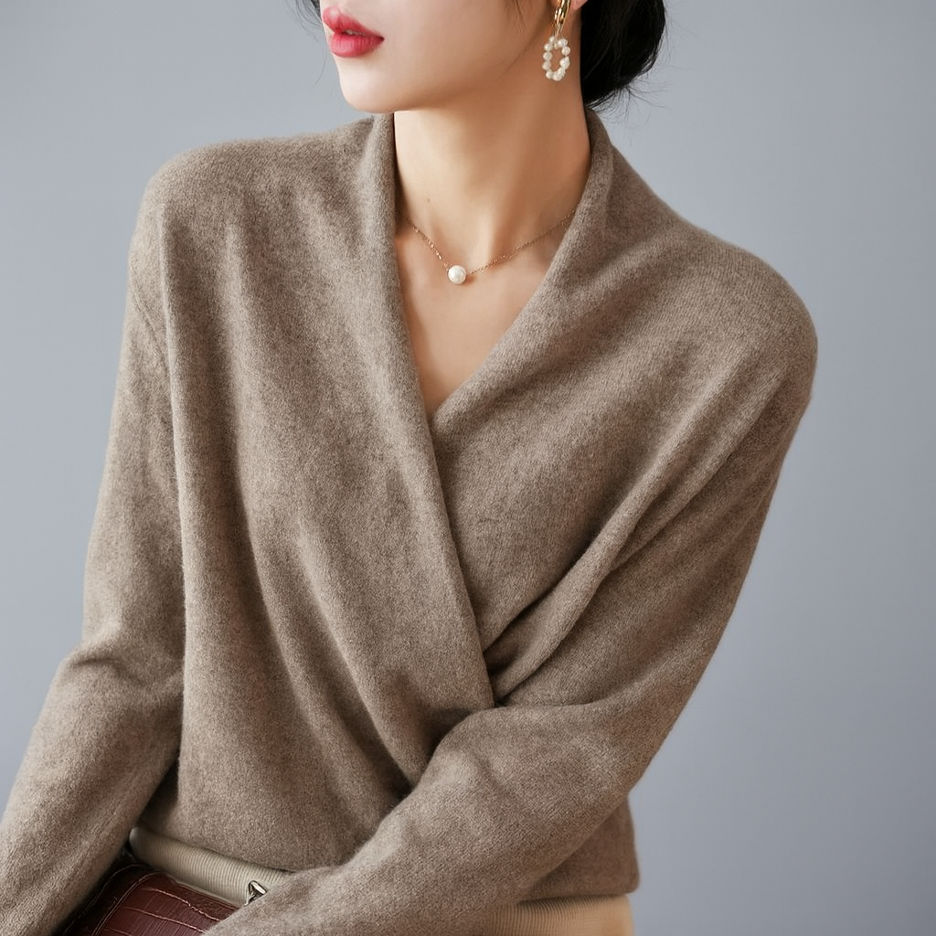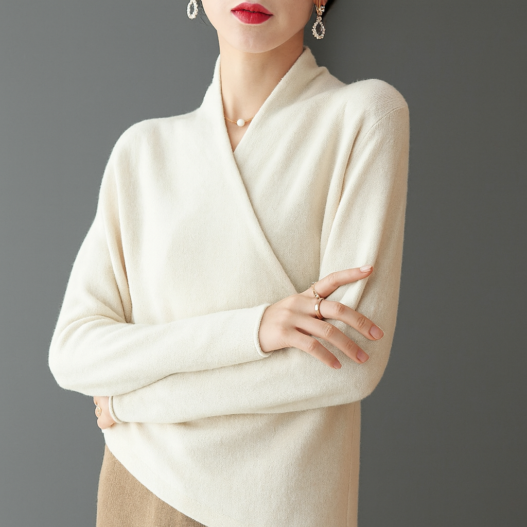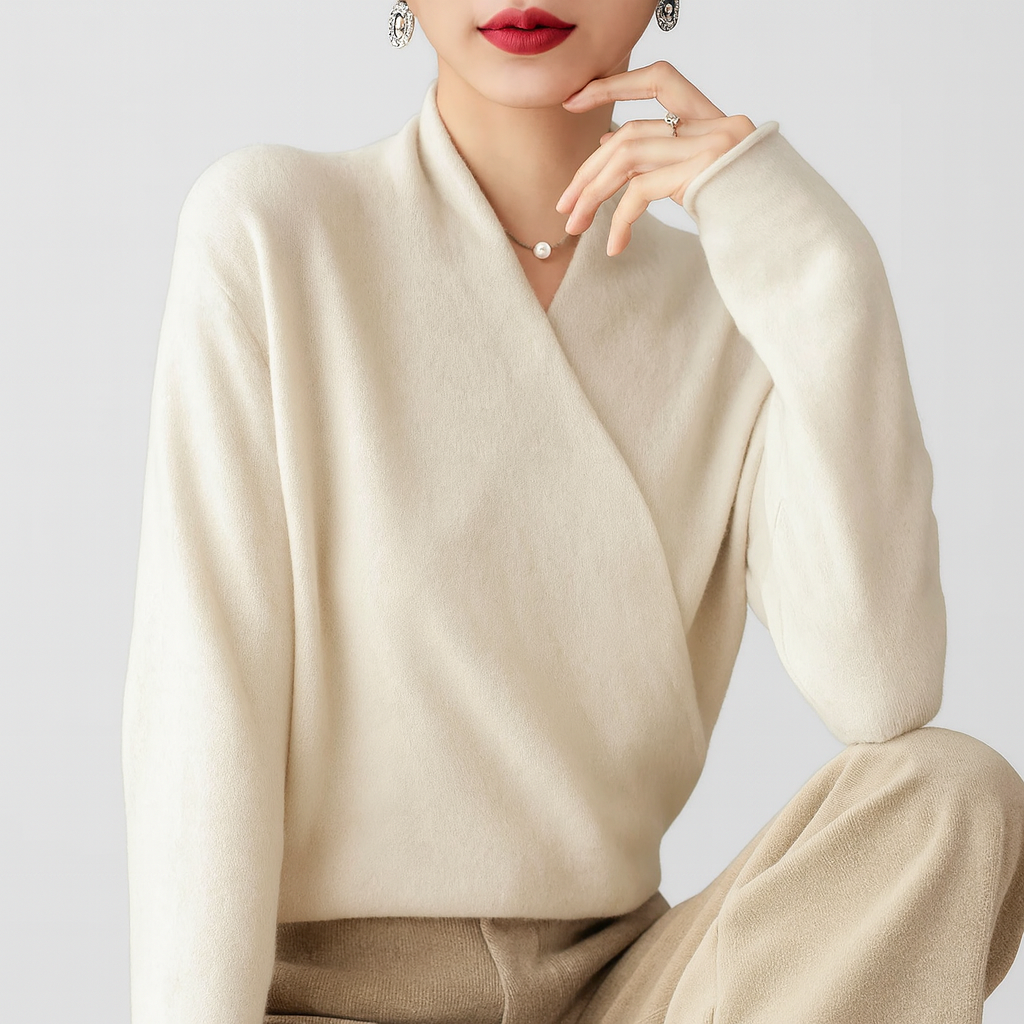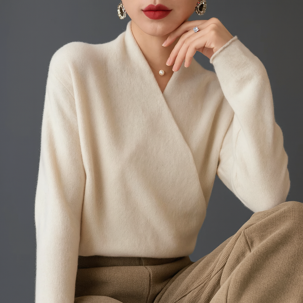 Lenora — Lightweight 100% Wool V-Neck Sweater with Relaxed Fit