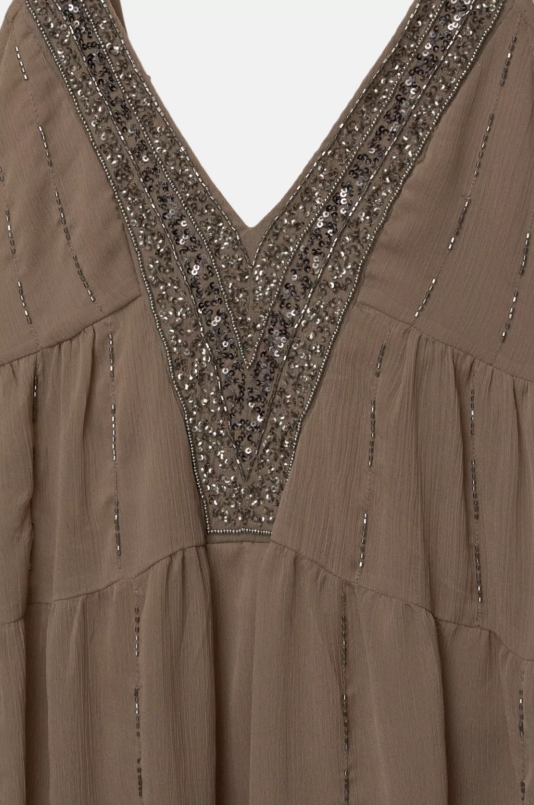 • Design features: A deep V-neckline and subtle bead accents that give the dress its distinct boho look.