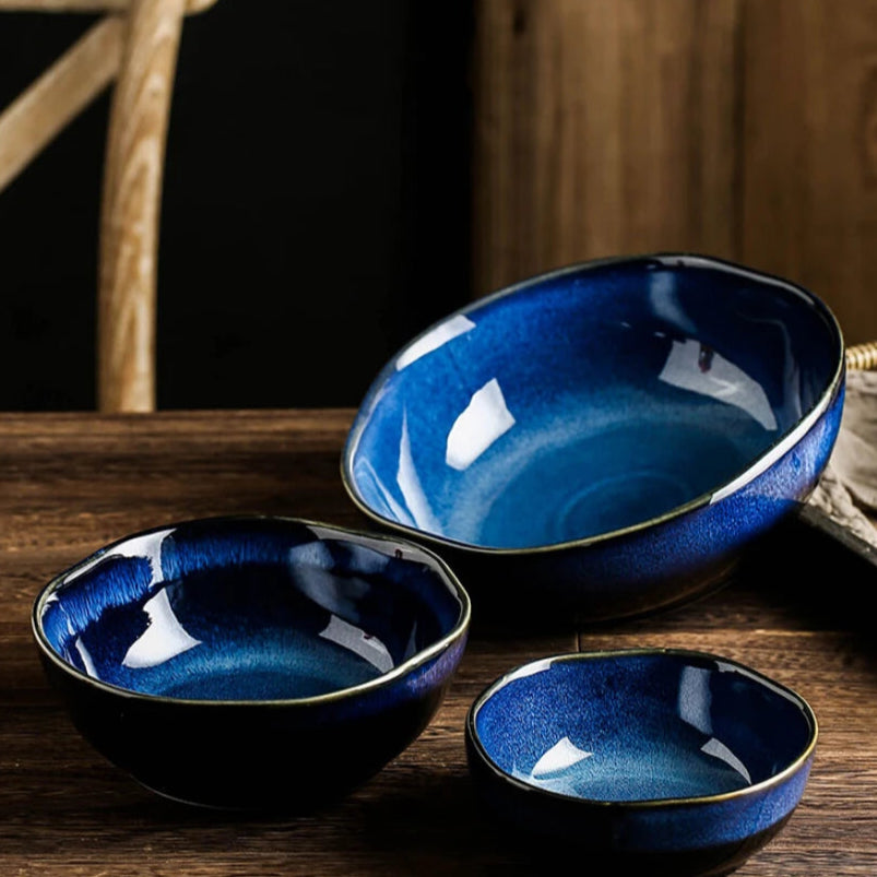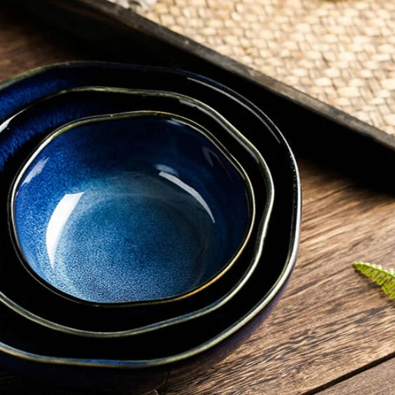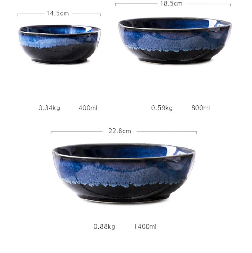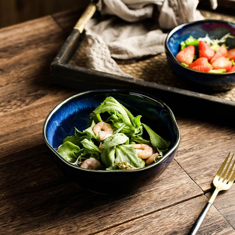 This handcrafted ceramic bowl features rich blue tones and a durable glazed finish. Its refined design blends everyday practicality with a touch of sophistication, making it ideal for enhancing your daily meals with style.