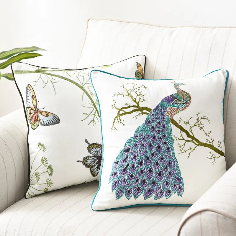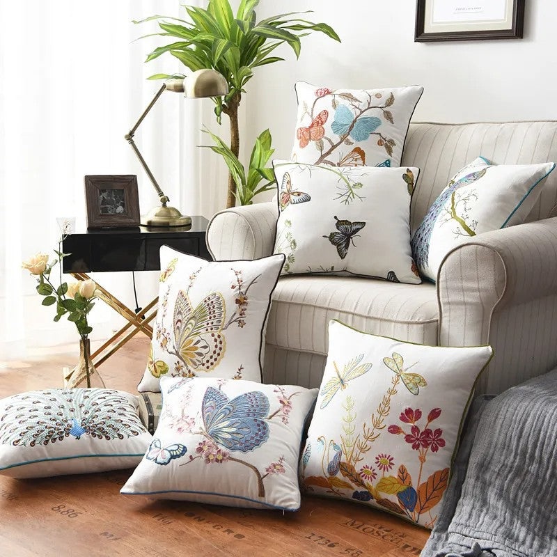 Exquisite butterfly and floral embroidery: Detailed stitching creates a vibrant, nature-inspired design that enhances any room with subtle elegance.