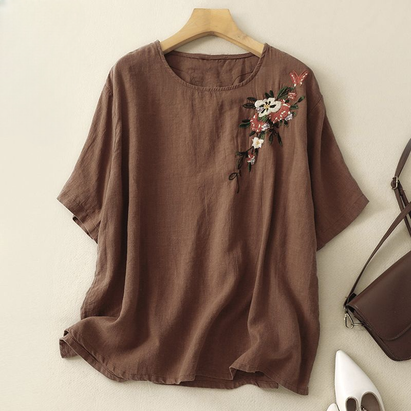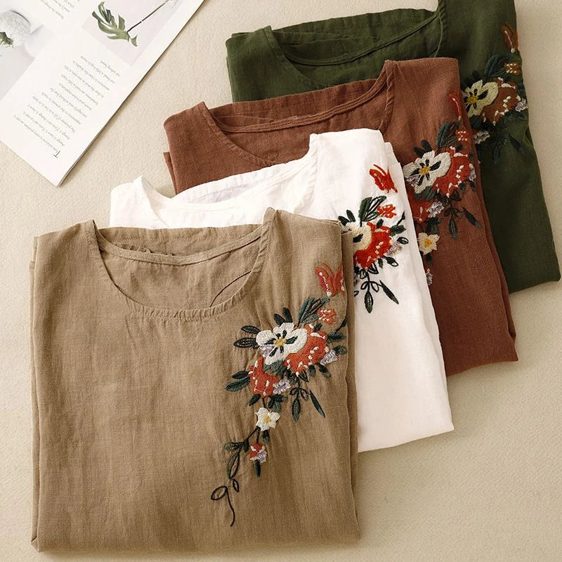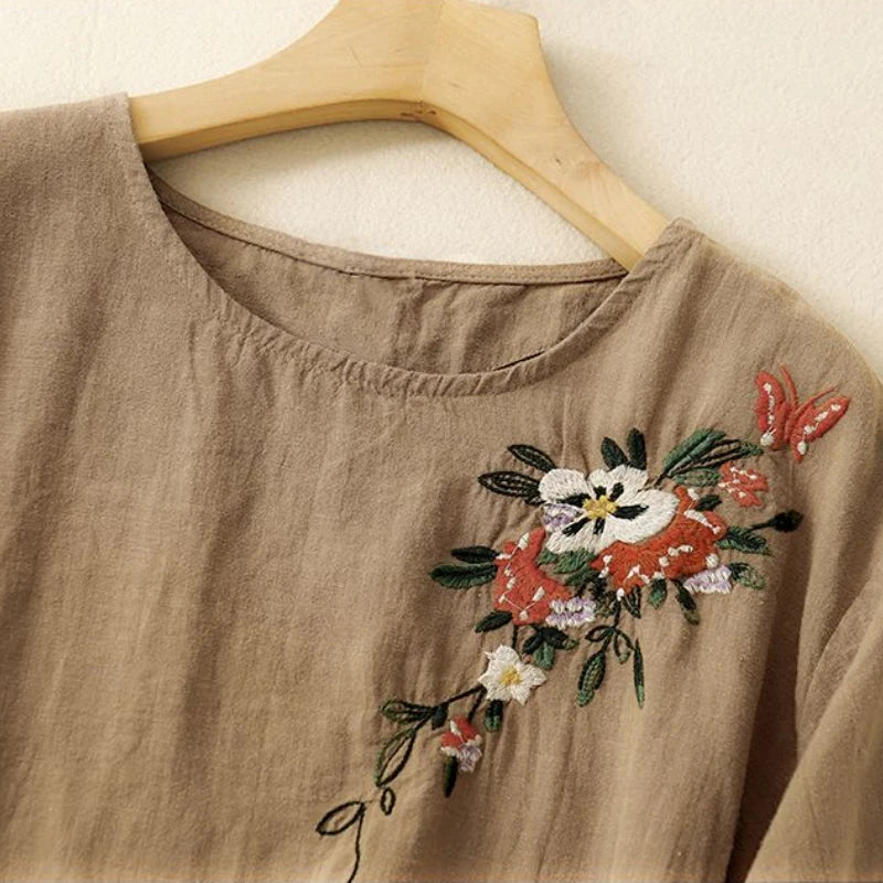 Liora — Embroidered Linen Dress with Relaxed Fit