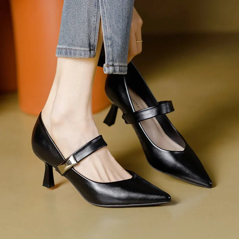 Lorien Genuine Leather Pointed-Toe Mary Jane Heels