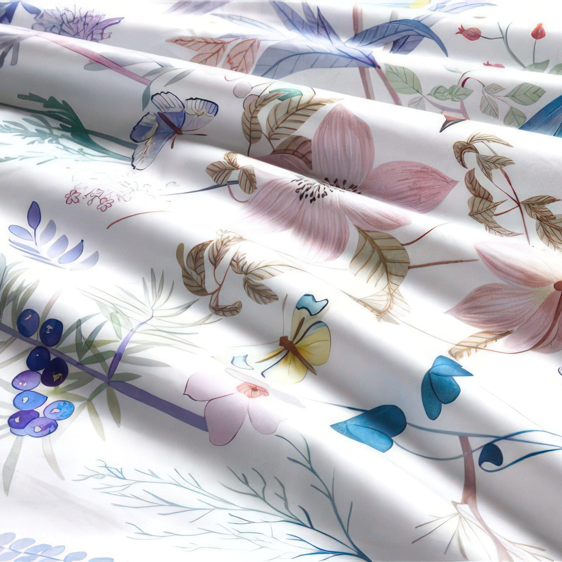 Experience the cool, silky caress that cradles your body to sleep. The sateen weave of LumaFable™ keeps you perfectly temperate while the subtle shimmer elevates your bed’s look to pure luxury. Every fine botanical stroke and fluttering bird pulls your eyes in—making bedtime the most beautiful part of your day, every day.