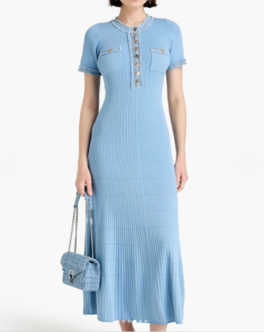 Picture yourself turning heads on a sultry summer evening, draped in a dress that doesn’t just fit—you become unstoppable. The LumeLace™ Knit Denim Dress unleashes your irresistible vibe, igniting confidence that stops people in their tracks.