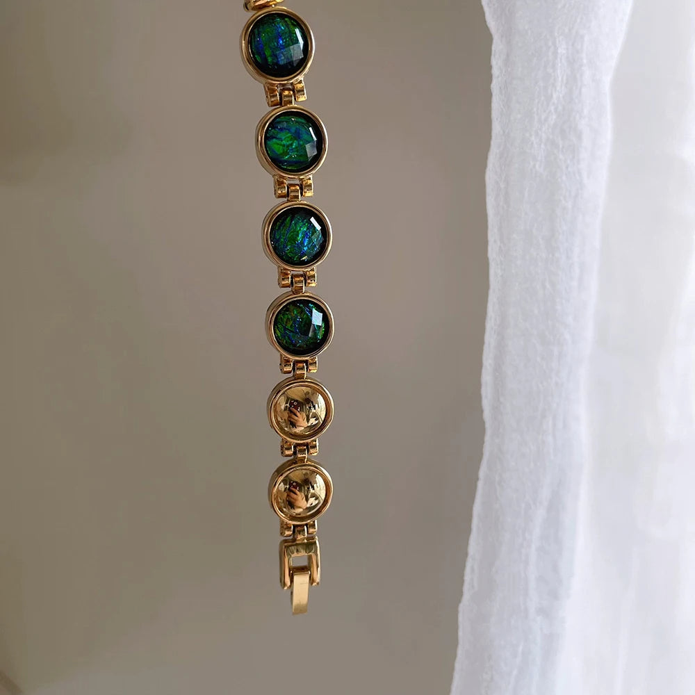 Faceted Green Opal Stones: Deeply iridescent gems that add a distinctive shimmer and luxurious style to your look.