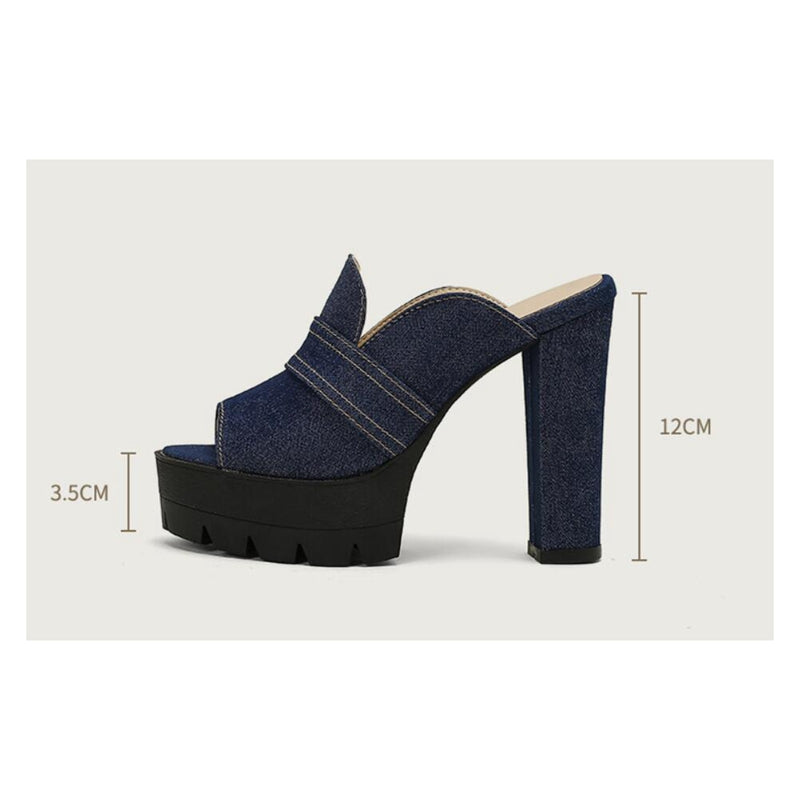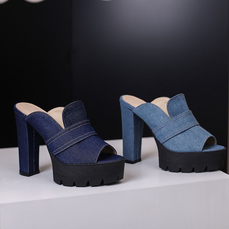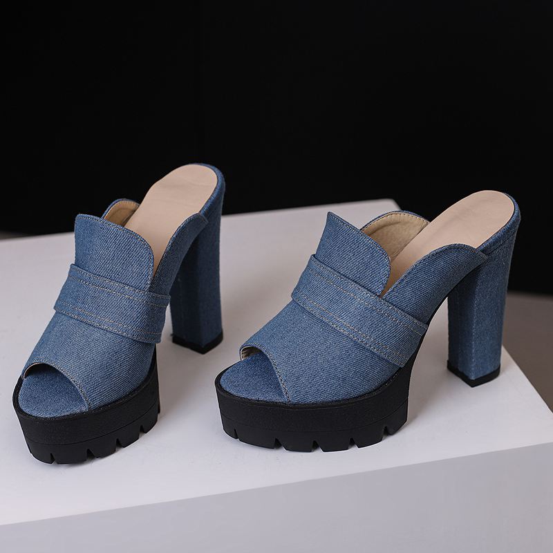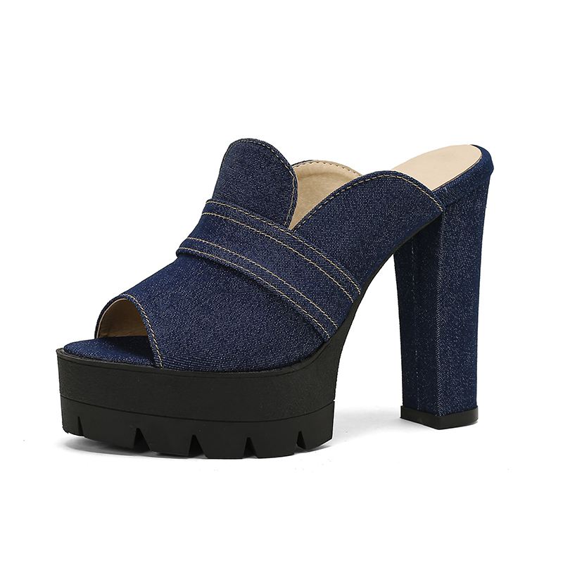 Norla Chunky Heel Denim Sandals — Raw Denim Open-Toe Comfort Heels
