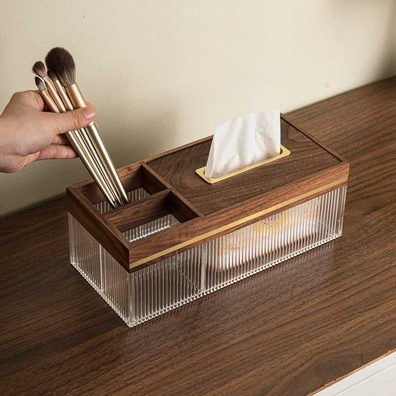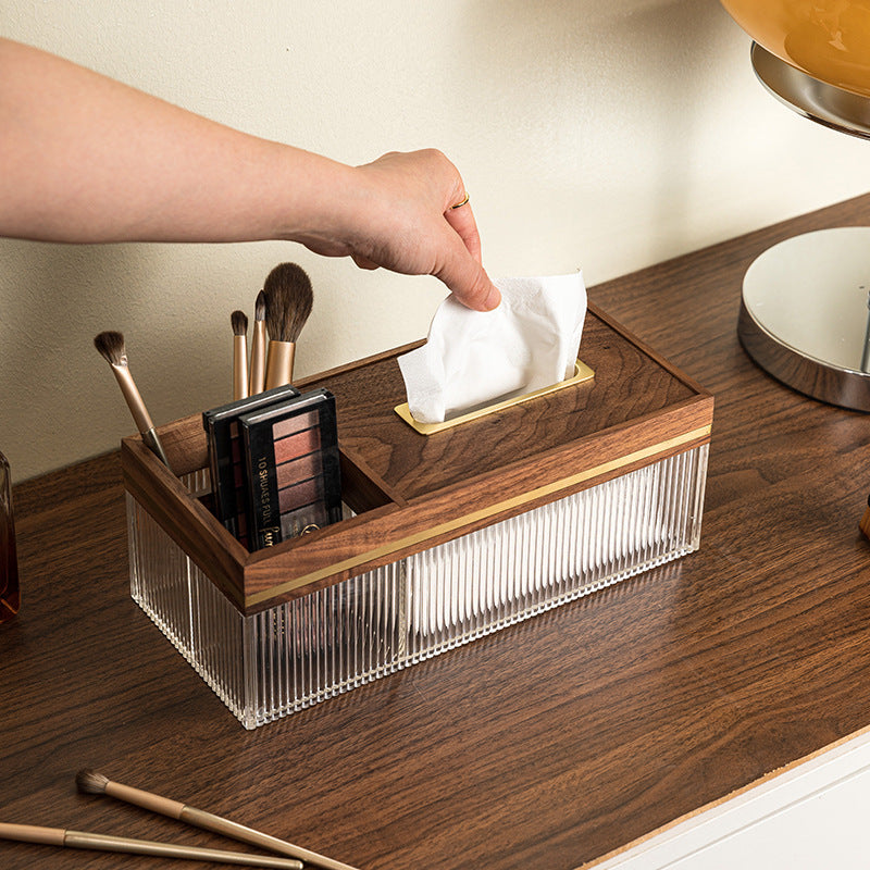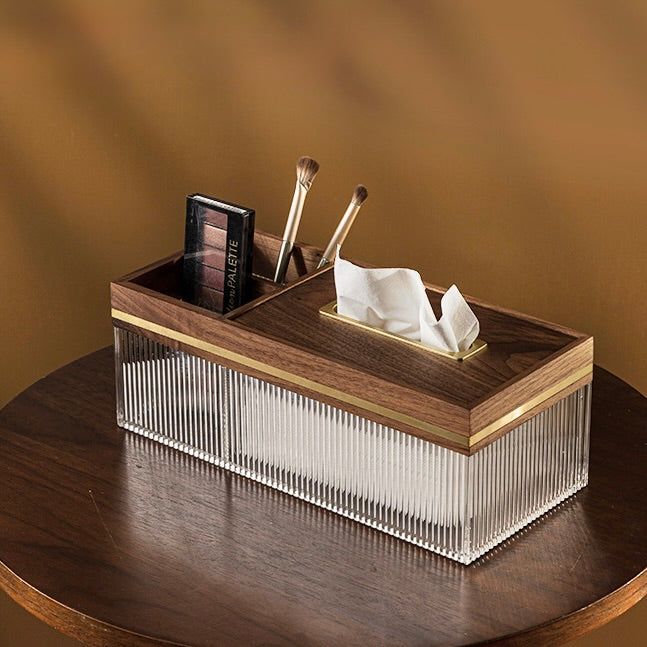 Step into a world where elegance commands attention and everyday essentials spark envy. This isn’t just a tissue holder — it’s a bold declaration of your taste. Handcrafted from rich black walnut with daring golden accents and a tactile ribbed acrylic shell, it dares to redefine sophistication in your space.