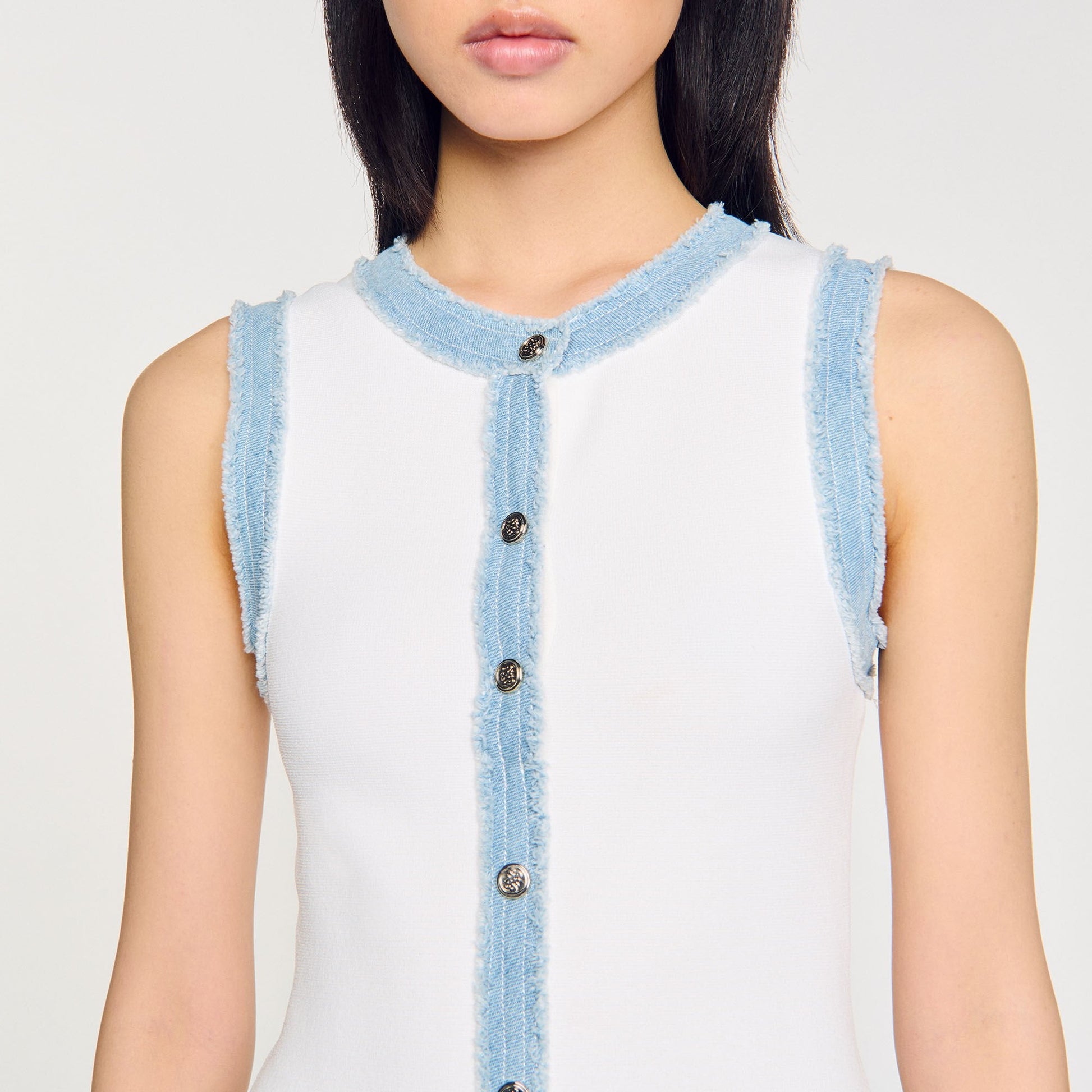 ✅ Bold denim trim contrast: These washed denim edges don’t just add style — they demand attention by injecting a raw, modern vibe that sets you apart from the sea of boring dresses.