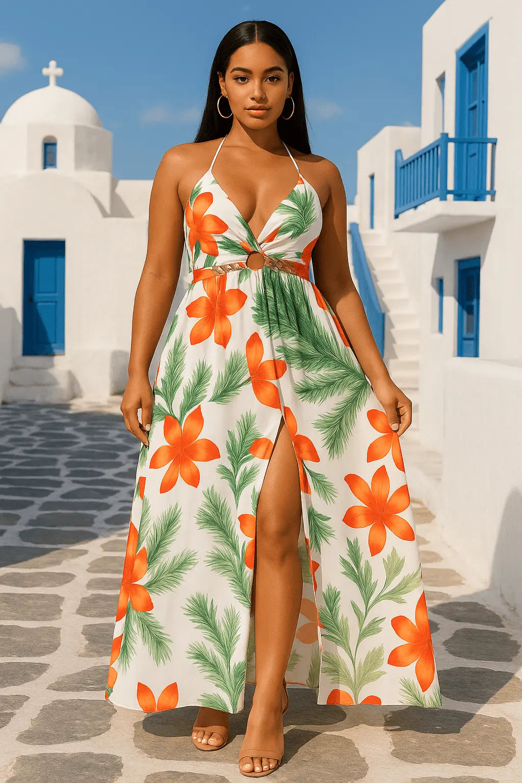 Slip into dangerous confidence with the Women’s Floral Print Chain Decor Split Thigh Tie Back Cami Dress — where sexy meets sun-soaked freedom. Perfect for beach escapes and sunlit nights, this maxi dress lets you flaunt jaw-dropping curves with a sleek ring-linked halter and a backless reveal that screams irresistible.