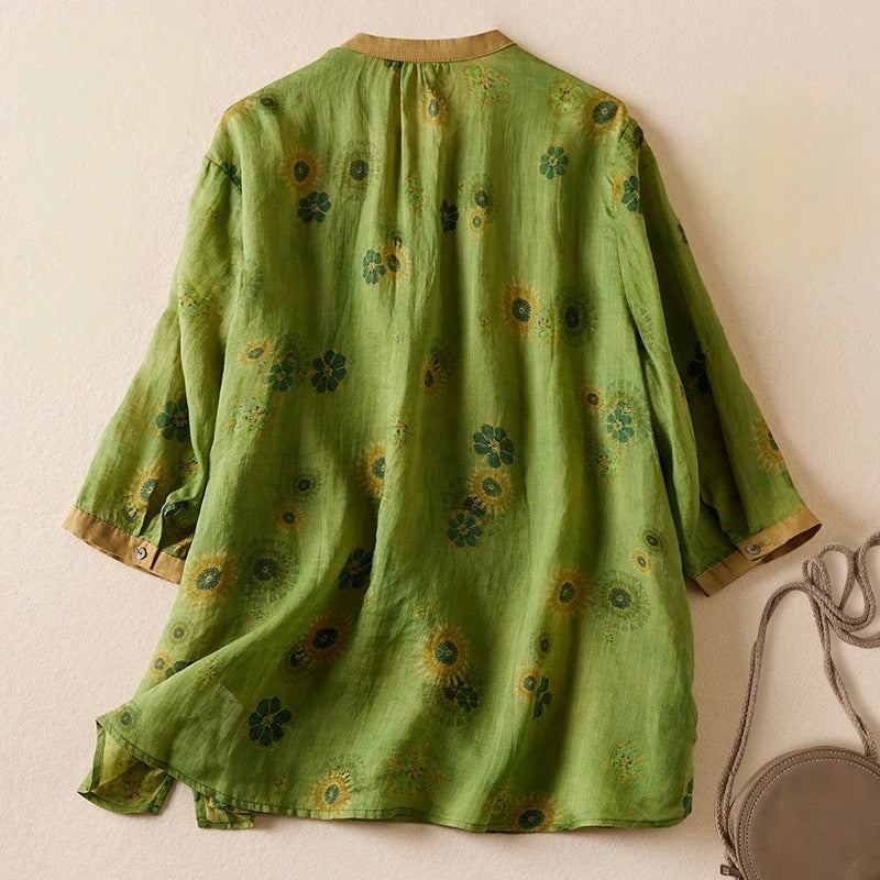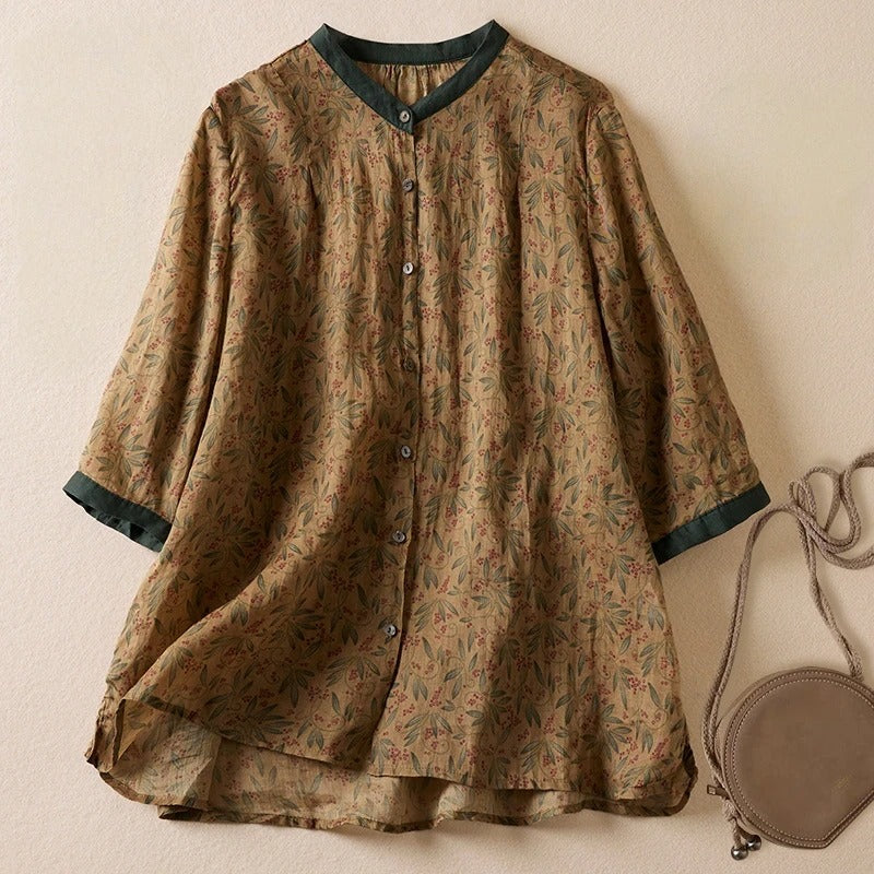 Slip into the whisper-light touch of ZephyraMist™—the linen blouse that drapes like a breeze and anchors your style in effortless serenity. Its sleek standing collar and flowing hemline aren’t just design choices—they’re your new calm armor.